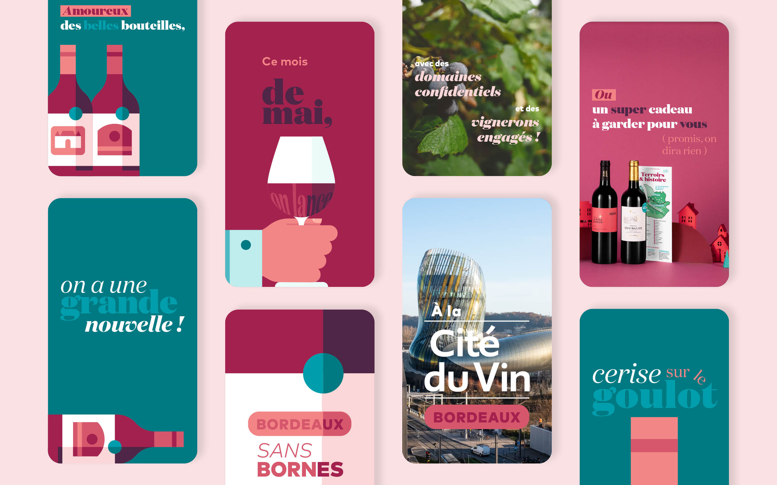 Cette animation est une story Instagram qui présente une édition limitée du Petit Ballon sur le thème de Bordeaux, en partenariat avec la Cité du Vin.